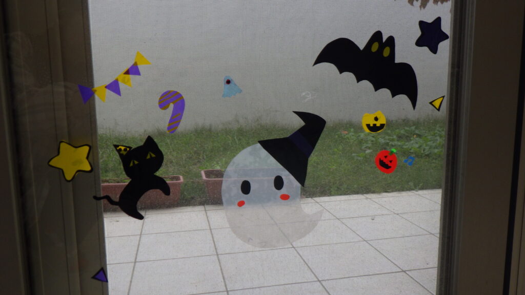 朝も練習した「トリックオアトリート」の言葉を言ってお菓子をGET!!