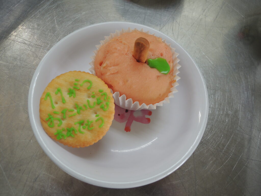 りんごの枝にはフィンガービスケットを差し、緑色のアイシングで葉っぱを描きました♪