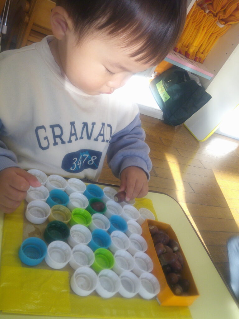 散歩で拾ってきたどんぐりの遊びが盛り上がっているいちご組さん♡