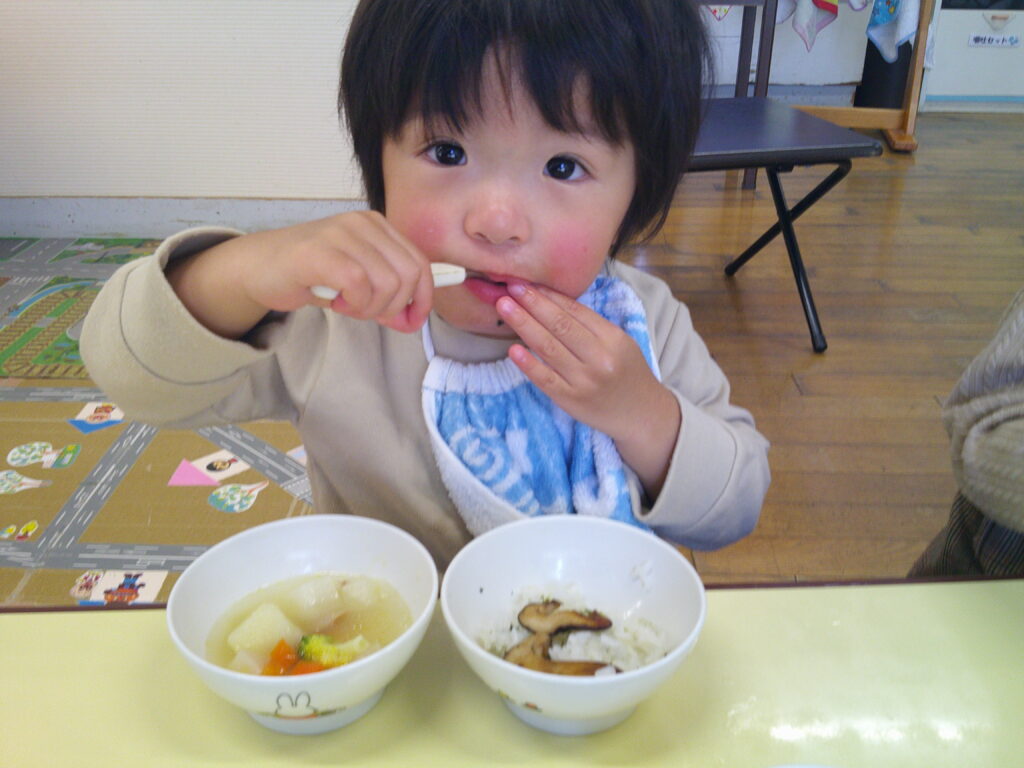 しいちゃんとたけちゃんは、収穫もして、クッキングで美味しく食べました♪ バター醤油で炒めたり、みじん切りで小さくしてほうれん草の白和えに入れたりしました!