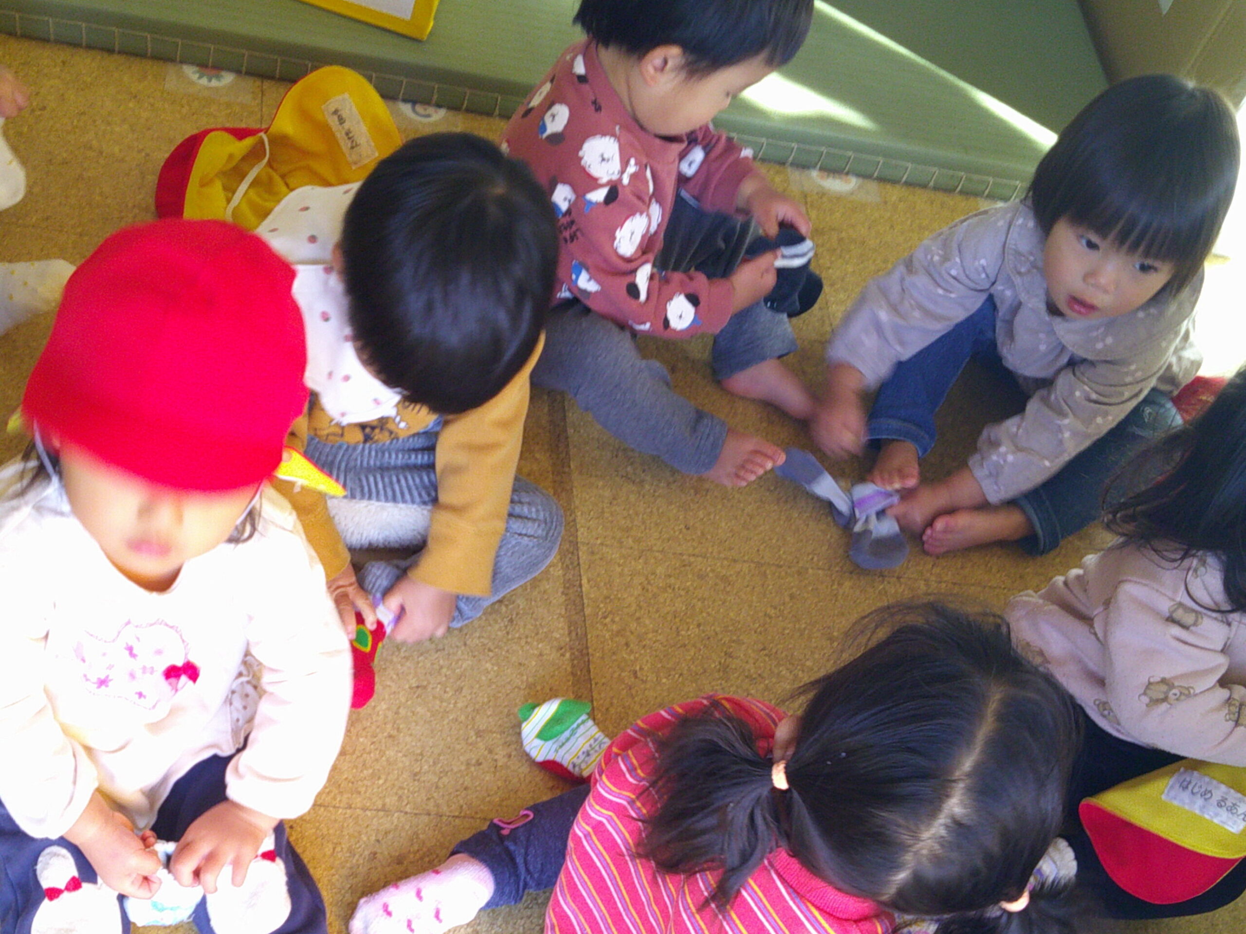 「やって」「やって」って触ろうともしなかった子も、思うようにできなくて途中で靴下をポイッて投げていた子も、どんどんできるようになって、 「できたよ~」「みて~」って言葉が沢山聞かれるようになりました。