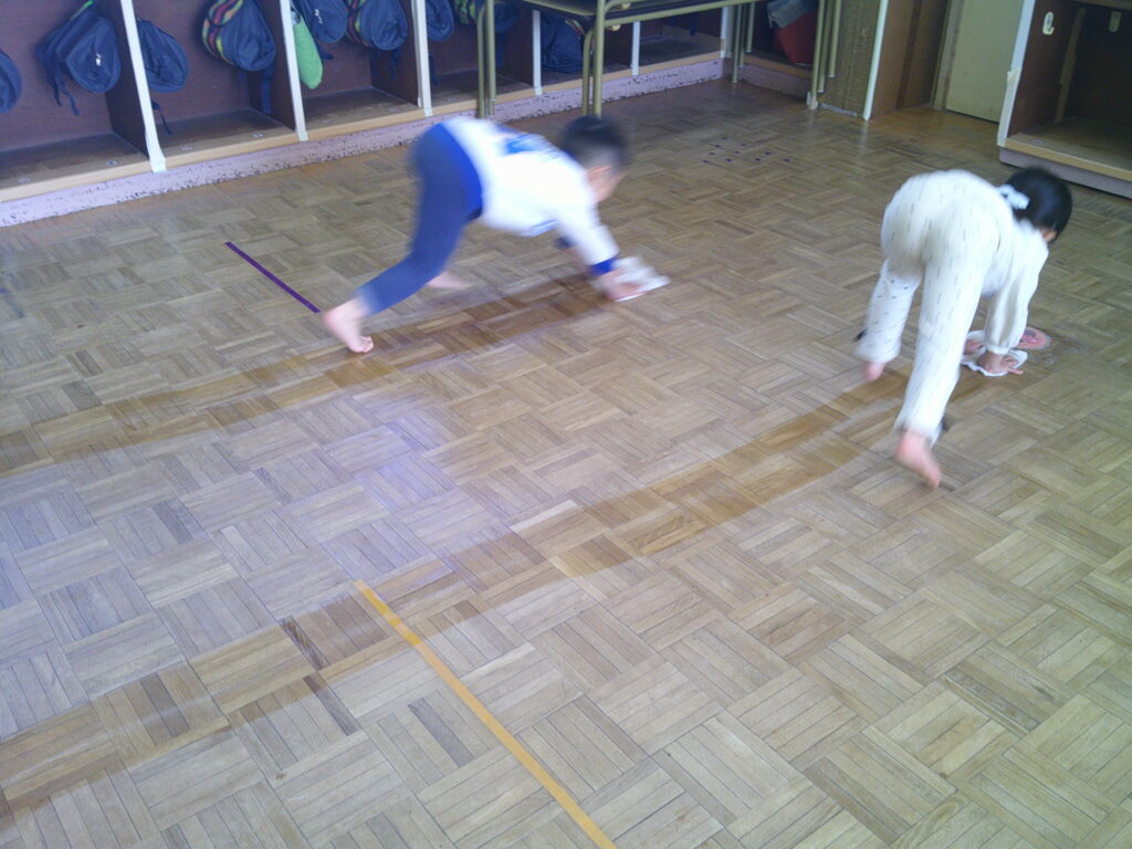 そして、当番の子の名前を呼ぶと「はーい!」と言って靴下と上靴を脱いで準備してくれて、雑巾を渡すと一生懸命床をきれいにしてくれます✨