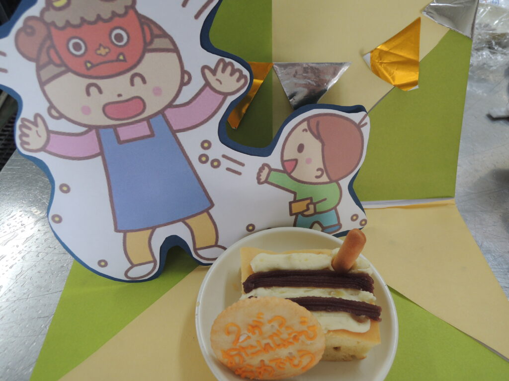 そしておやつは節分ケーキです♪