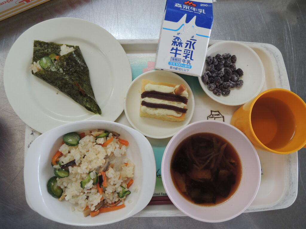 給食は手巻き寿司だったので、みんなでのりを巻いて食べましたよ!