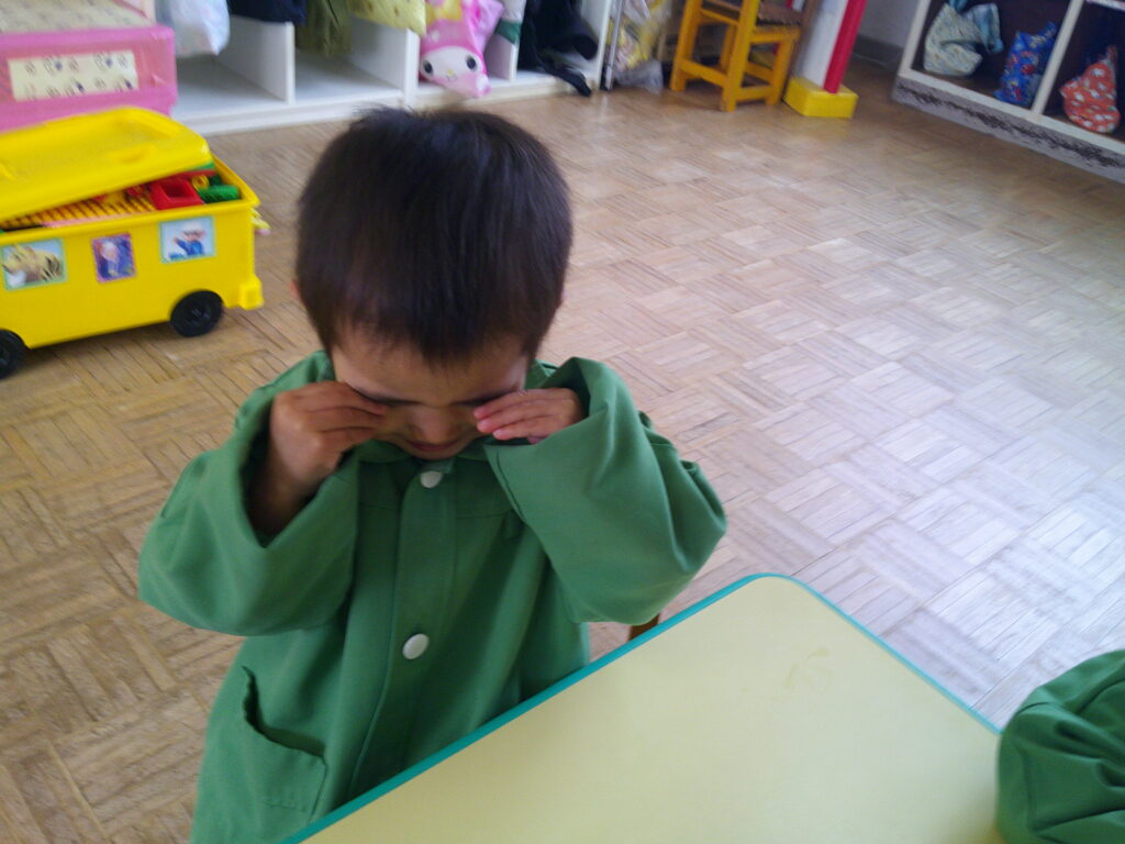 最近は「手をたたきましょう」の歌がお気に入り!「わらいましょうあっはっはっはっ」「おこりましょううんうんうん」「なきましょうえんえんえん」に合わせて表情が変わります!